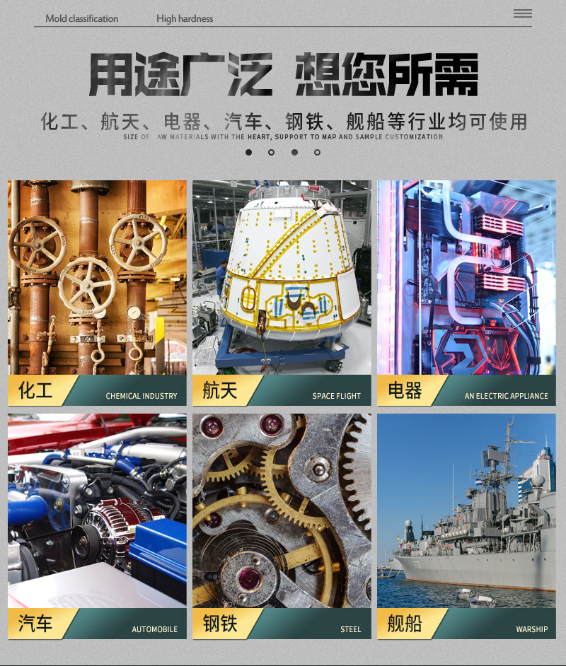 YG20C | 13.4-13.8 | ≥82 | ≥2480 | 適于制標準件,軸承、工具等行業(yè)用的冷鐓, 冷沖,冷壓模具,彈頭和彈殼的沖壓模具。 |