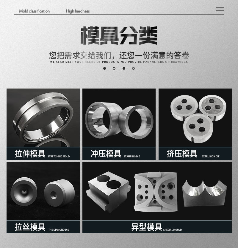 無磁鎢鋼組合模具,成型組合模具 可以按照圖紙或樣品訂做加工,滿足您對硬質(zhì)合金(鎢鋼)粉末冶金模具的使用需求,硬質(zhì)合金(鎢鋼)粉末冶金壓制模具具有全致密、高耐磨、抗腐蝕等優(yōu)點(diǎn),是磁性粉末、陶瓷粉末、難熔金屬粉末、鐵銅基粉末等粉體材料壓制成型模具的理想材料。