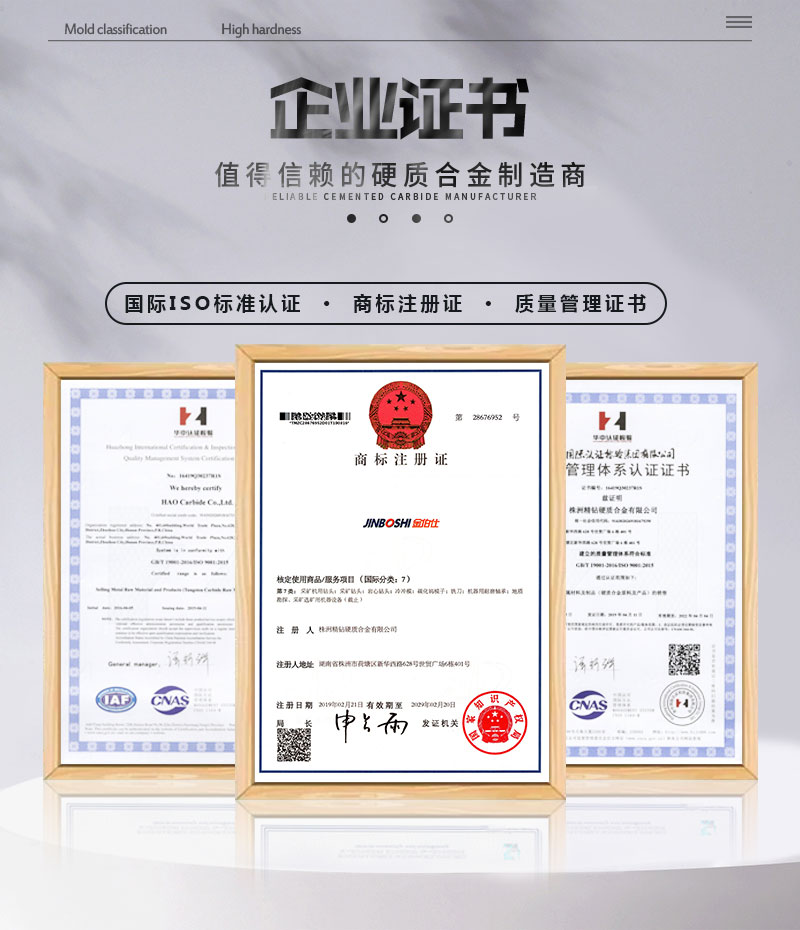 YG20 | 13.4-13.8 | ≥83.5 | ≥2480 | 適于制沖壓模具、如沖壓手表零件、 樂器弦等,沖電池殼,牙膏皮的模具, 小尺寸鋼球,螺釘,螺帽等的沖壓模具等。 |